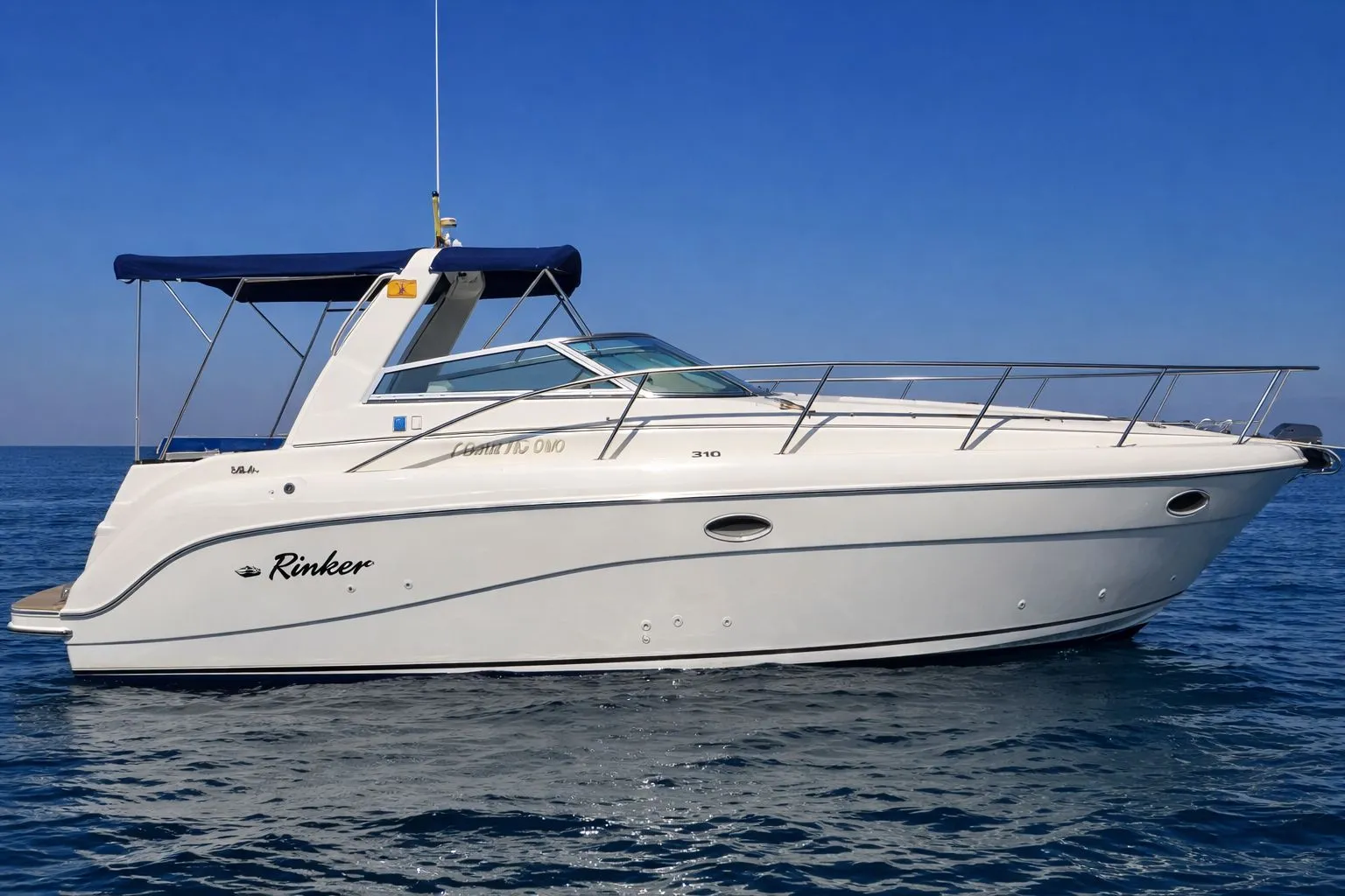 La Rinker 310 es un yate de motor que combina elegancia, rendimiento y comodidad, ideal para aquellos que desean disfrutar del mar con estilo. Este barco es perfecto tanto para salidas diurnas como para escapadas de fin de semana, ofreciendo una experiencia de navegación superior en cada travesía.